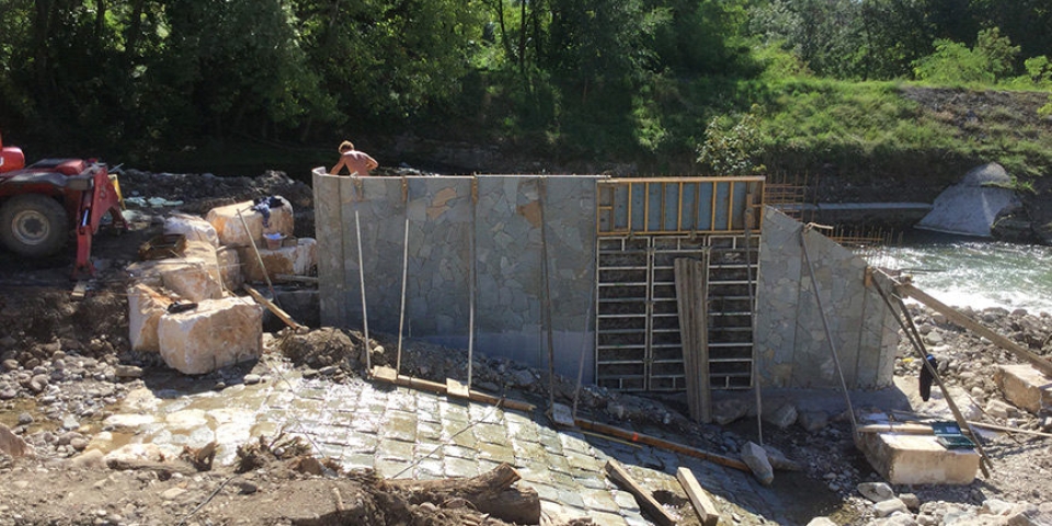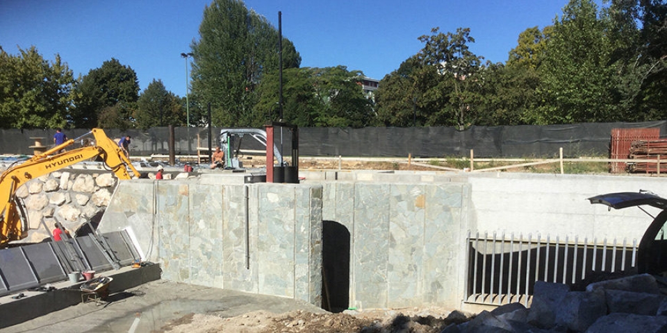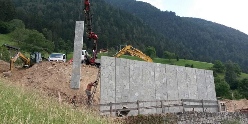 La doppia parete rivestita è una possibile variante di produzione in stabilimento che consiste nella posa sulla faccia esterna del manufatto di uno strato di rivestimento in pietra (tipologia e colore scelte dal committente).